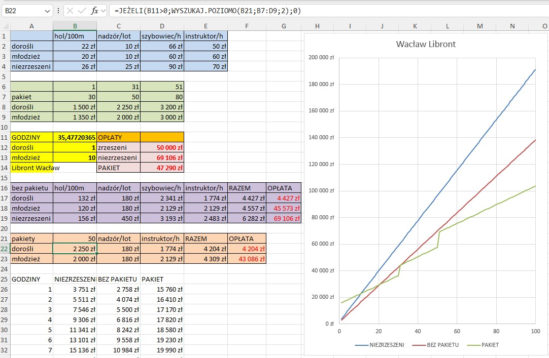 Loty szybowcem - symulacje ekonomiczne, jeżeli, analiza warunkowa