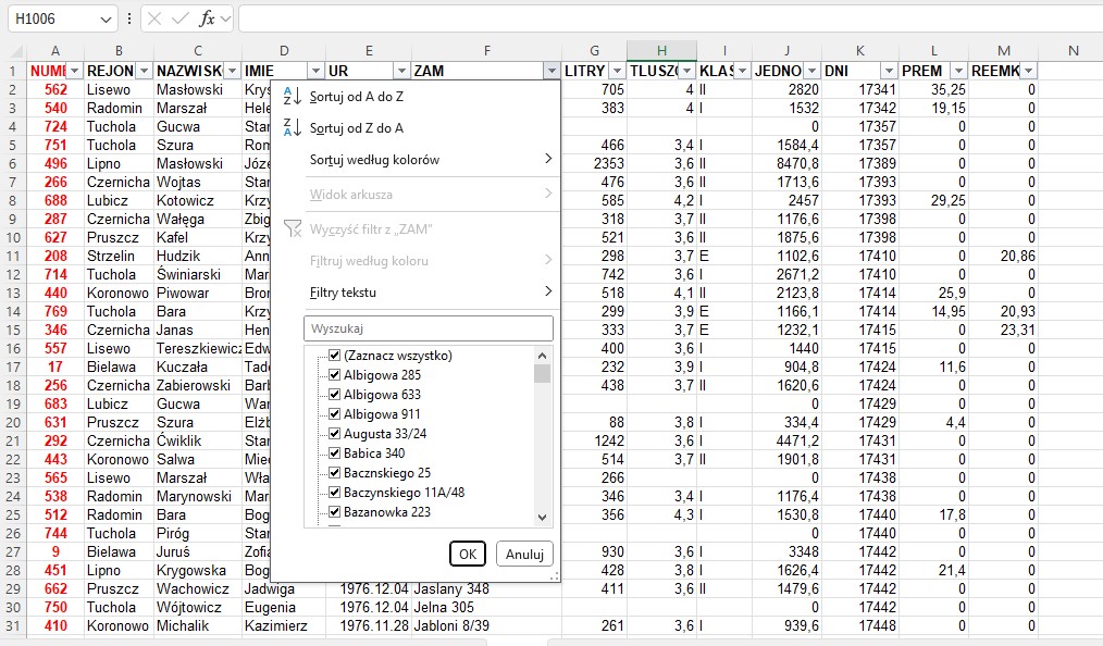 Wypłata w mleczarni - filtrowanie i sortowanie danych