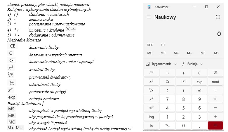 Obliczenia arytmetyczne - potęgowanie i pierwiastkowanie, notacja naukowa