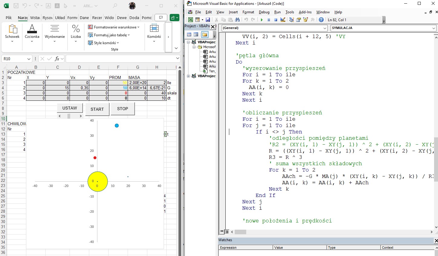 Laboratorium grawitacyjne - symulacja zjawisk fizycznych przy użyciu makropoleceń języka VB