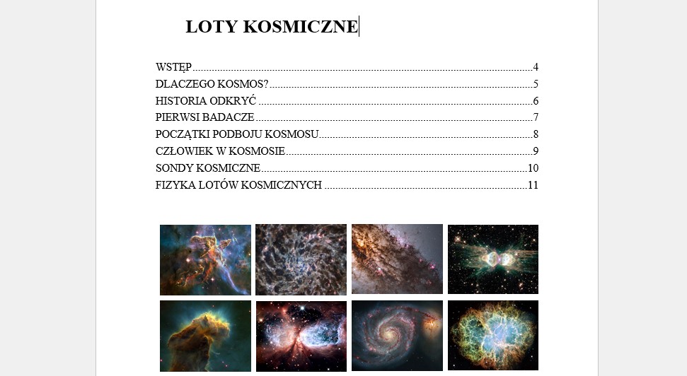 Astronomia - nagłówki, spis treści, kolumny, wstawianie grafik, oblewanie tekstem, galeria